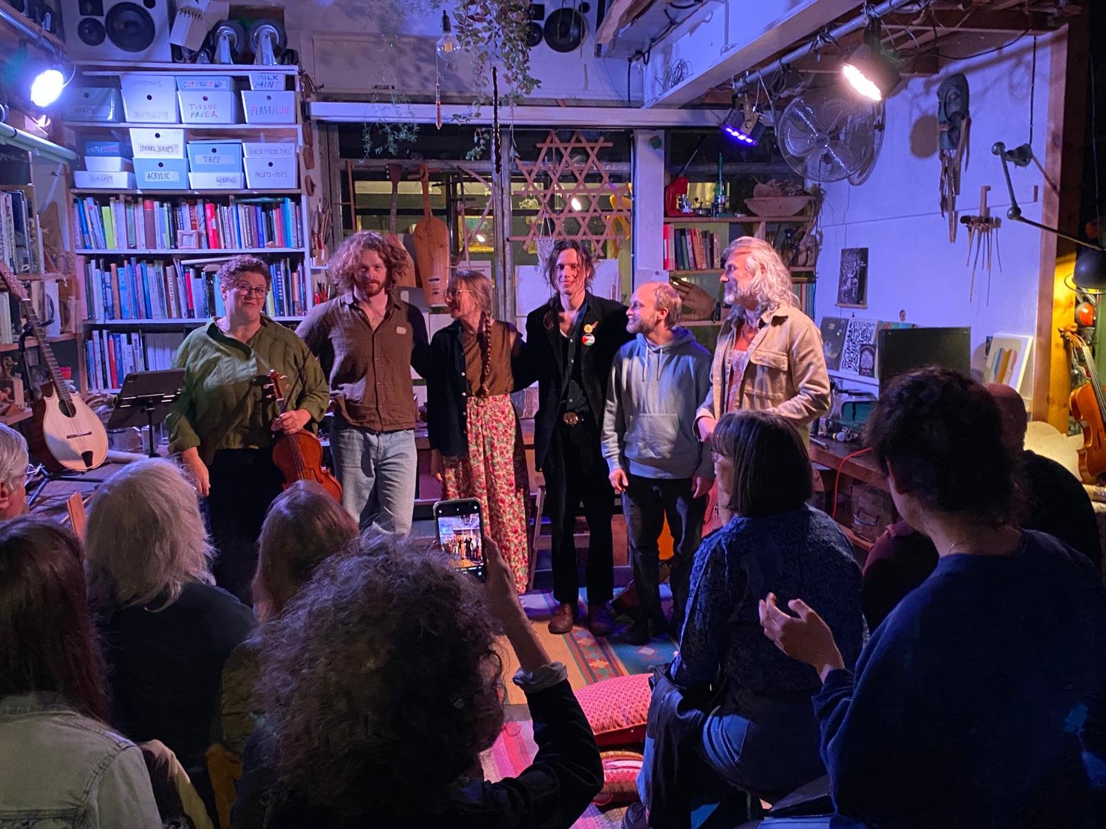 One thing the public love to know is how instruments are made and from what they are made of! So methods and materials were discussed well. During this the use of local materials was emphasised in hopes to educate the public in a the direction that we aim to go. An intriguing and important subject for the night that challenged some strongly held ‘traditions’ in the trade, in particular ones that demand the use of exotic hardwoods. Although we agree, as young luthiers of the modern day, that a direction for more thoughtful musical tradition is a better one for the earth and its future as a healthy place for us all to live.